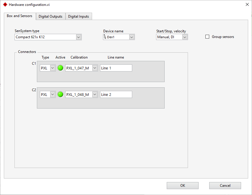 Each sensor has a calibration file and the name of the calibration file (without the .dat extension) is shown in the Hardware configuration dialog (Figure 2).