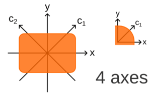 With 4 axes the diameters are [Width, Height, D45, D45], where
