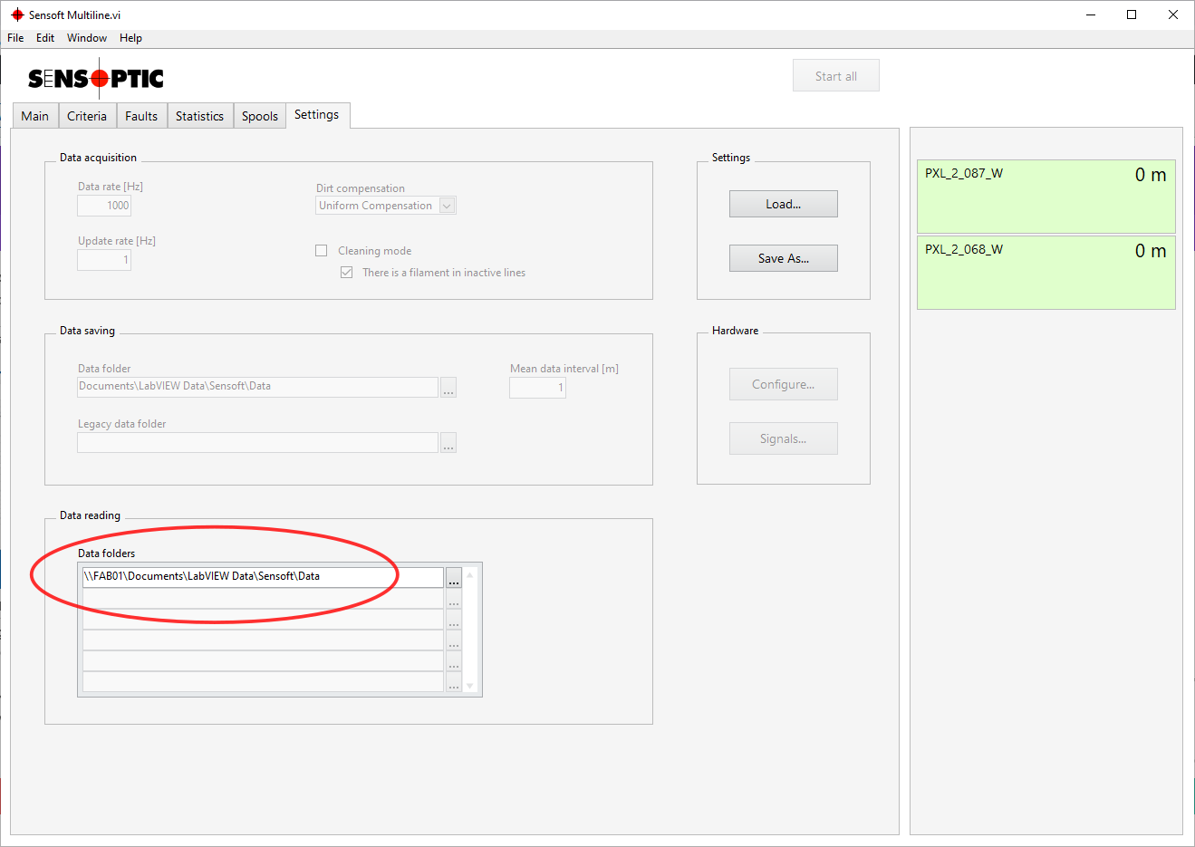 On page Settings, insert a folder in Data reading|Data folders (Figure 1). The inserted folder should be the Data folder of the measuring computer, i.e. the folder in Data Saving|Data folder of the measuring computer.